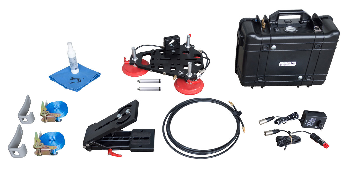 The VacuRigg System is ideal for mounting cameras, lights or other accesories on all smooth surfaces like cars for example.